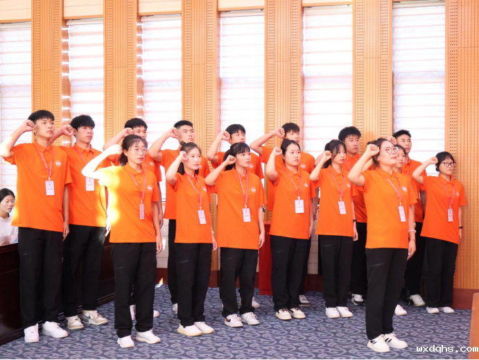 支教团全体师生宣誓,带队教师刘婷领誓。