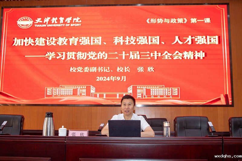 9月23日,党委副书记、院长张欣为我校本科生代表讲授形势与政策第一课,宣讲党的二十届三中全会精神,全面阐释教育、科技、人才在全面建设社会主义现代化国家中的地位作用和相互关系,教育引导大学生深刻认识新时代加快建设教育强国、科技强国、人才强国的历史使命。