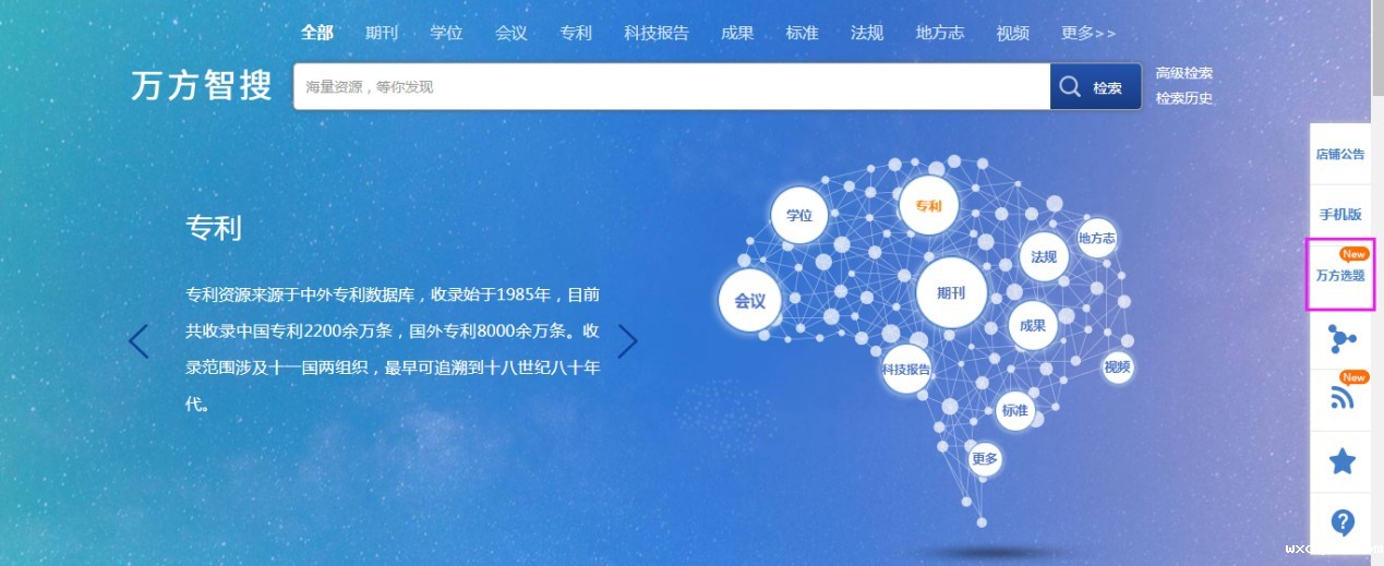 方式二:从智搜首页的服务中,点击万方选题入口。