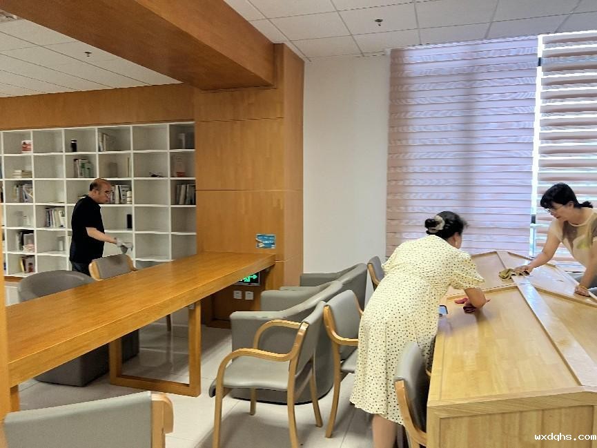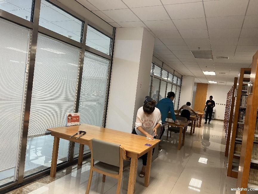 在馆领导的带领下,全体馆员积极响应,自备清洁工具,对二楼三楼所有阅览区进行了清洁和布置;对遗留杂物、书籍做了清理及家具重新摆放。大家通力配合,整体清洁工作有条不紊得开展。图书馆处处都能看到大家劳动的身影。