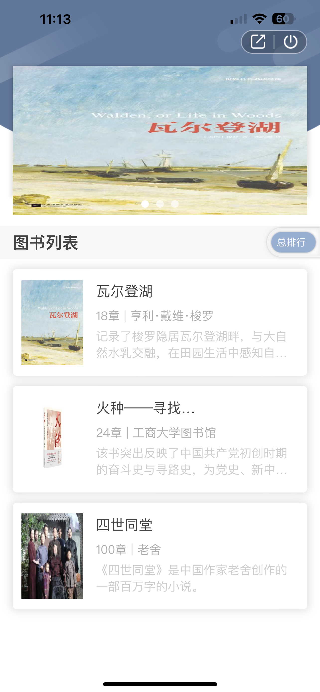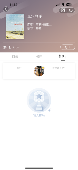 排行:根据阅读时长排序,显示当前用户的活跃度排名。