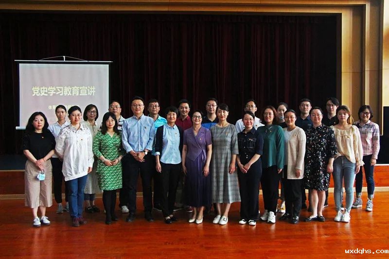 舞蹈馆小剧场,为更好地使全体教师党员领悟党史学习教育的重大意义,宣讲在教师党员们共同唱响《唱支山歌给党听》中开始。