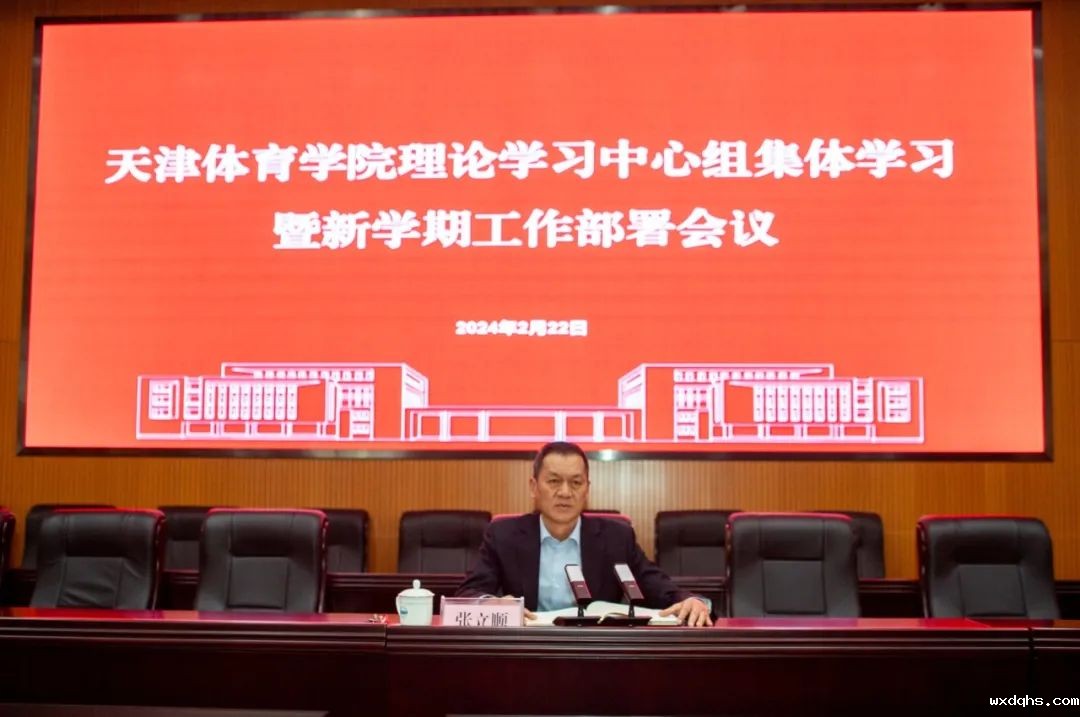 张立顺首先传达了习近平总书记视察天津并听取市委和市政府工作汇报时的重要讲话精神和市委学习贯彻习近平总书记视察天津重要讲话精神专题研讨会暨市委理论学习中心组读书班精神。他指出,习近平总书记始终关心天津发展、心系天津人民,在喜迎新中国成立75周年的重要节点,在京津冀协同发展重大国家战略实施10周年的重要时刻,在龙年新春佳节来临之际,亲临天津视察指导,看望慰问基层干部群众,在新时代新征程天津发展进程中具有重要里程碑意义。他强调,要深刻领会习近平总书记重要讲话精神的精髓要义,牢牢把握新时代新征程习近平总书记对天津工作的部署要求,深刻理解习近平总书记提出的“四个善作善成”的重大意义。一要在发展新质生产力上善作善成,坚持创新驱动发展,加大科技成果转化力度,助力体育产业高质量发展。二要在进一步全面深化改革开放上善作善成,把牢学校改革发展航向,用好人工智能等前沿科技,加快推进教育教学、科技创新、竞技体育等领域的改革发展。三要在推动文化传承发展上善作善成,立足“两个结合”,把传承中国女排精神和民族传统体育作为重要抓手,深入挖掘中华体育文化内涵,大力弘扬中华优秀传统体育文化。四要在提升城市治理现代化水平上善作善成,进一步深化“京津同城”,以推进京津冀协同发展为战略牵引,积极推动京津冀地区院校交流合作,助力京津冀成为中国式现代化建设先行区、示范区。张立顺要求,学校各级领导干部要发挥示范带头作用,勇担使命、开拓进取,从全局谋划一域、以一域服务全局,全力以赴抓好各项工作落地落实,切实把习近平总书记重要讲话精神转化为服务中国式现代化天津建设的具体实践。