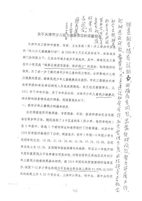 2013年中心承担天津市关工委专题调研“天津市少儿视力健康行为特点和对策研究”,该项目于2013年完成。2014年“关于天津市少儿视力健康情况的调查报告”报送中国关工委,受到中国关工委顾秀莲主任的高度重视。顾秀莲主任批示:调查报告很有说服力,的确存在问题,只要针对问题努力开展工作,就能进取成效,要奋斗。几点建议切实可行。加大宣传力度,求得领导、学校、家长、社会支持,研究报告可开新闻发布会,引起各方面重视。